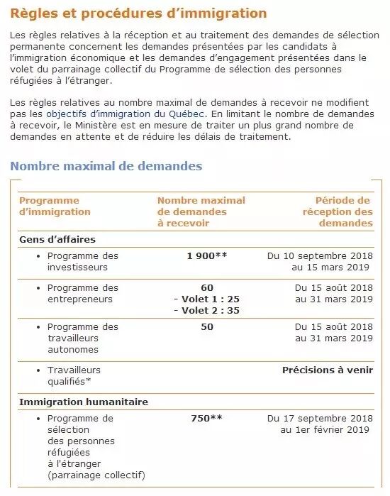 想要移民魁省的你注意了!加拿大魁省政府之前已经正式发出公告,魁省投资移民将于今年9月10日重启,申请截止日期为2019年的3月15日,移民配额为1900个,其中中国申请配额或由70%降低到65%,总计1235个可以接受申请。