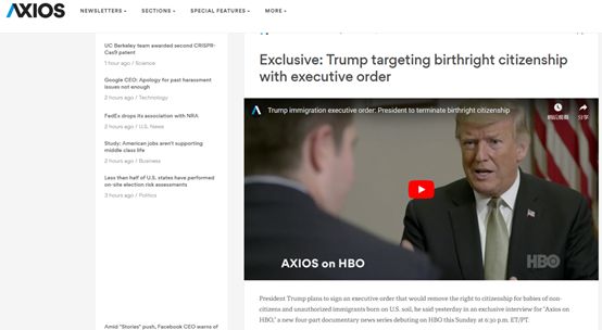 美国总统特朗普自上任以来,可谓大动作不断。这次,特朗普又“语出惊人”,在接受美国新媒体公司Axios的独家采访中表示,他计划签署一项行政命令(Executive Order),取消美国的落地生政策。