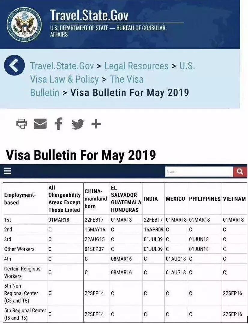近日,美国移民局最新公布了2019年5月(2019财年第8个月)的各类移民排期表,其中杰出人才类移民EB-1,优先日维持2017年2月22日不变。