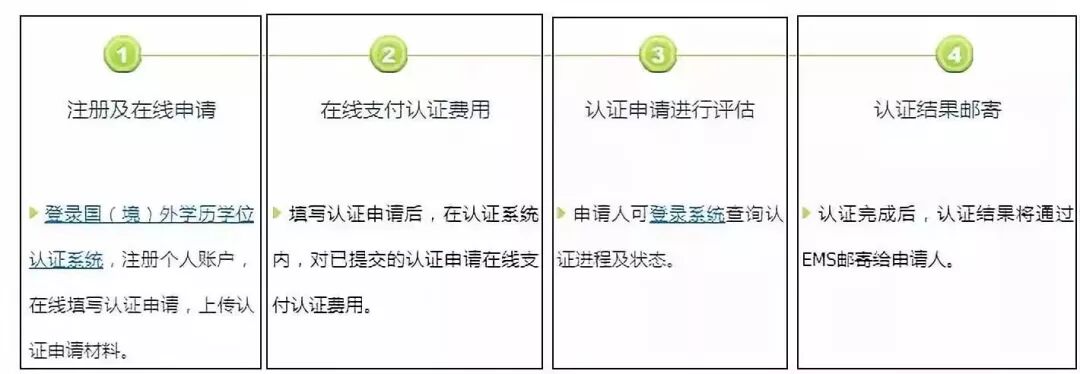 现在教育部的国(境)外学历学位认证流程相较前两年又精简了很多,申请认证人只需网上提交申请材料并支付认证费用即可,无需再到验证机构递交纸质申请材料。