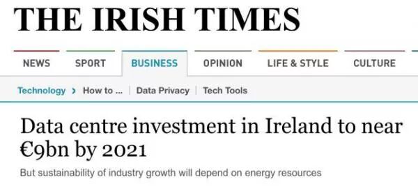 在爱尔兰首都都柏林,一场科技变革正在如火如荼地进行:各大顶尖科技公司纷纷为其数据中心(Data Centres)选址在爱尔兰。据科技研究公司HostinIreland的最新数据,预计到2021年,爱尔兰数据中心的投资额将达到90亿欧元!