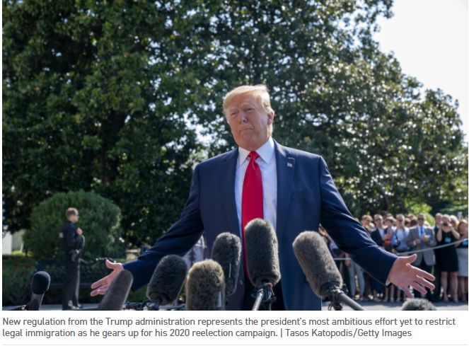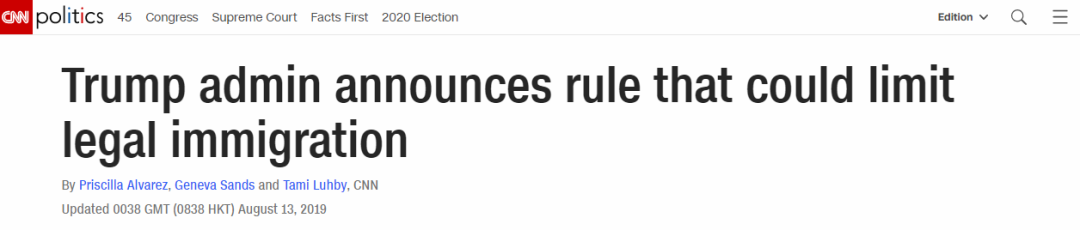 当地时间8月12日,美国特朗普政府发布了针对合法移民的“公共负担”新规最终版,严限向领取福利的贫困移民发放绿卡。该规定将令美国移民部门更趋向于拒绝绿卡和签证的申请,从而大幅减少获准进入和留在美国的合法移民人数。有专家表示此举通过拒绝给数十万人提供签证和永久居留权,或将使美国境内合法移民人数减半。根据国土安全部(DHS)的数据,这项长达837页的规则文本适用于通过合法途径来到或留在美国的人,预计将影响到约38.2万人,支持移民者则表示可能会有数百万人首次影响。美国公民和移民服务局(USCIS)代理局长肯·库奇内利在白宫新闻发布会上说,这将鼓励“那些寻求来美国或留在美国的人自力更生和自给自足”。这样一来,低收入移民或将更难进入美国。这项由白宫高级顾问斯蒂芬•米勒(Stephen Miller)和其他强硬派官员推动的新规,是“没有人比我更懂移民”的特朗普大规模打击移民的最新举措。为取悦中下阶层选民,赢得2020年美国大选特朗普可谓不惜一切代价,而限制合法移民正是其”雄心勃勃的努力“的一部分。“公共负担”条款至少可以追溯到1882年的“移民法”。当时的联邦立法者希望确保移民能够自给自足,而不是最终成为公共负担,以此保护纳税人。更新后的规则将更明确定义和扩展基于“公共负担”拒绝申请人的理由。这份800多页的文件将于14日在联邦公报上正式发布,并于10月生效,将“公共负担”定义为在36个月内,获得过一项或多项指定的公共福利超过12个月的移民。前移民和归化局(INS)1999年发布一份指南,根据指南,公共负担被定义为“主要依赖”政府援助的人,这意味着政府提供的收入超过其收入的一半。特朗普政府新规扩大了1999年临时指导方针中涉及的福利范围,将社会安全金、贫困家庭临时援助,以及大多数形式的医疗补助和补充营养援助计划,即粮食券都纳入“公共负担”考量因素。新规还规定,如果某些非移民外国人在延长或改变非移民身份后,获得了本无资格获得的福利,则他们不可再申请延长签证或变更移民状态。该规则还解释了移民局将如何在有限情况下行使酌处权,即对那些完全基于“公共负担”规则,而被拒绝移民身份者提供缴纳公共负担保证金的机会。最终规则规定最低保证金金额为8100美元,实际数额取决于个人的情况。除这些以外,移民机构也将继续把移民的年龄、健康程度、金融资产和教育水平等视为绿卡申请的标准考量因素。
