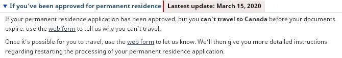 一旦可以前往加拿大,也请通过在线表格联系移民局,移民局会给您更多指导来完成永久居民的申请。