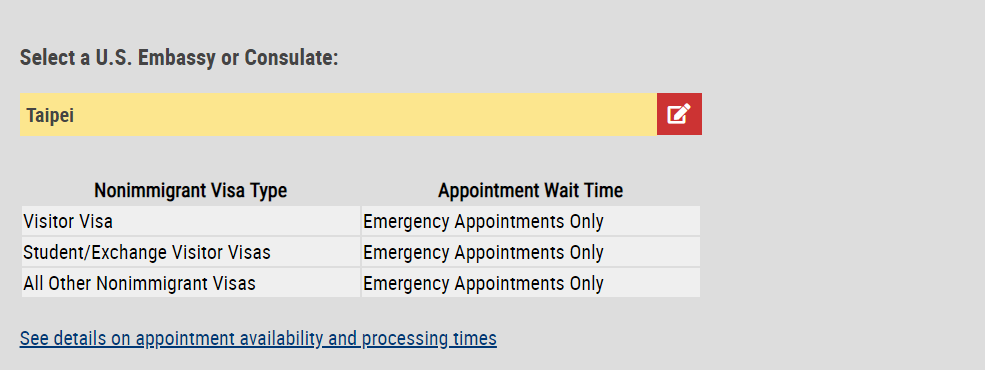 更多美签预约详情,大家可以自行前往美国国务院领事事务局(U.S. Department of State)官网,查询预约等待时间。