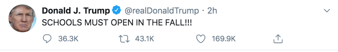 就在美国移民局发布最新禁令不久,特朗普在推特上发文:特朗普在新冠病毒疫情大流行的情况下一直致力于重开美国经济,期望美国可以尽快地恢复到正常轨道中。根据国际教育研究所和美国国务院教育和文化事务局提供的数据:2018-2019学年在美国的国际学生人数为1,095,299人。而由于疫情滞留在美国,无法回国的留学生们的数量也非常大。在这其中,在美留学的中国留学生简直是躺着也“中枪”了。正值美国暑假,不少学生因为买不到回国机票,加上路途遥远,感染风险大等因素,许多留学生选择了“原地不动”的战略,留在美国,等待秋季学期开学。大批留学生迫不得已滞留美国,每天过着寂寞如雪又担惊受怕的日子。