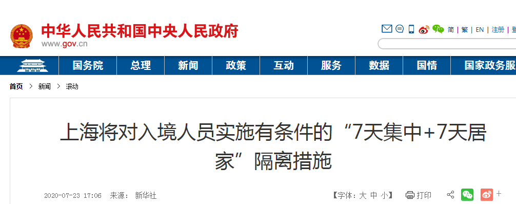 7月27日起,凡是乘坐国际航班抵达上海的乘客,如果符合条件,将允许采用"7天集中+7天居家"的隔离方式!