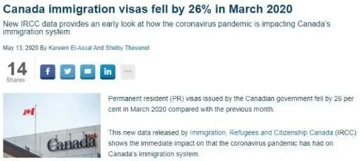 3月和4月是加拿大疫情的重点防治阶段,期间全国的经济和社会的发展都遭受重创,同时旅游限制和边境关闭也导致加拿大移民受损严重。