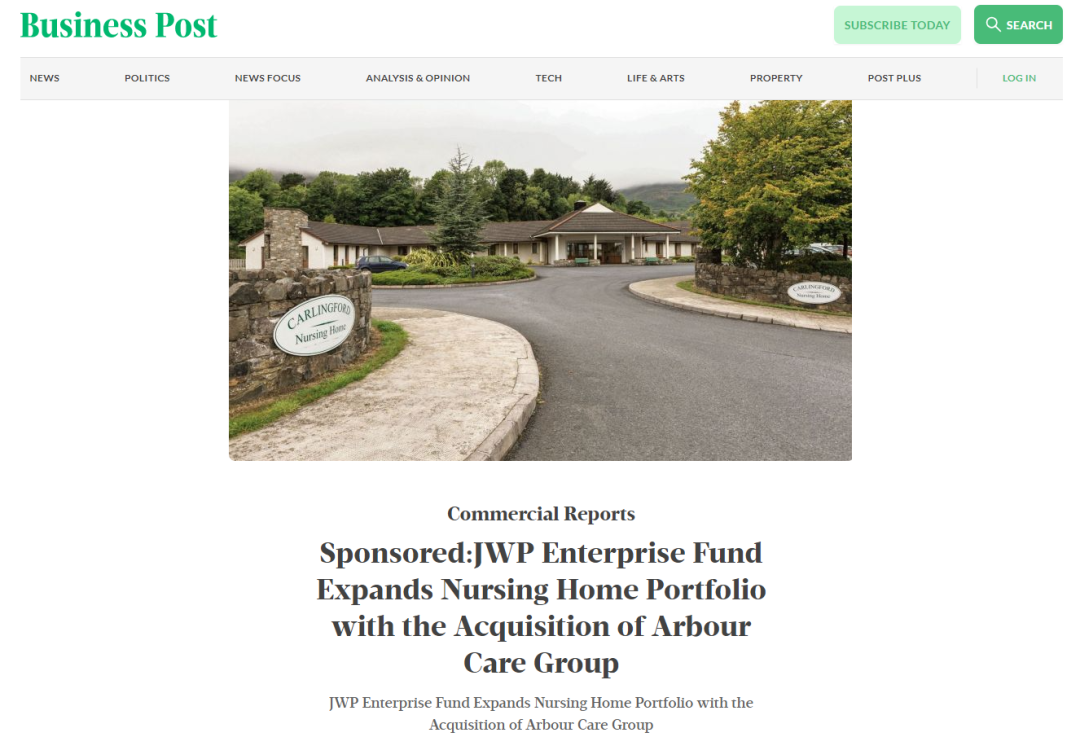 爱尔兰JWP ICAV 基金收购著名的爱尔兰养老院集团Arbour Care Group及旗下5家养老院。