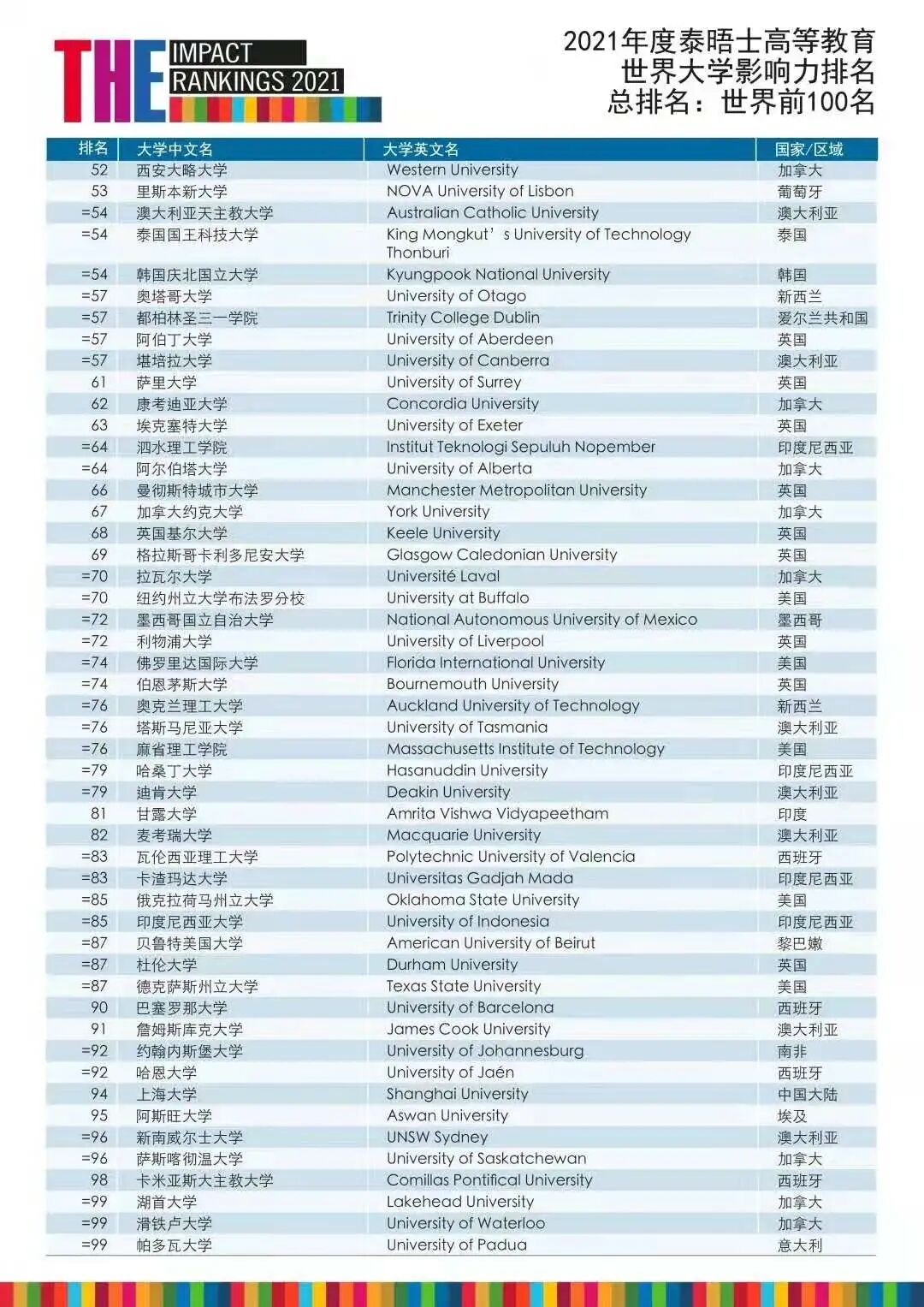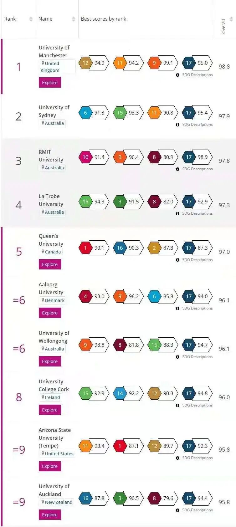 这份排名同样是学生选择大学值得参考的一项,它不再以大学的研究成果来评估大学,而是关注大学对世界上一些最紧迫问题的影响。