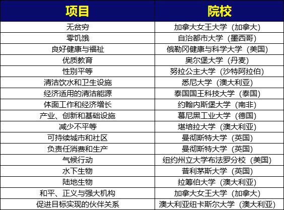 在SDG17个可持续发展目标中,单项排名最高的大学如下: