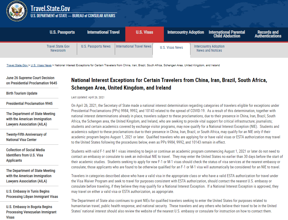 好消息!8月1日起 , 持F-1/M-1签证赴美将不受“14天旅行禁令”影响!