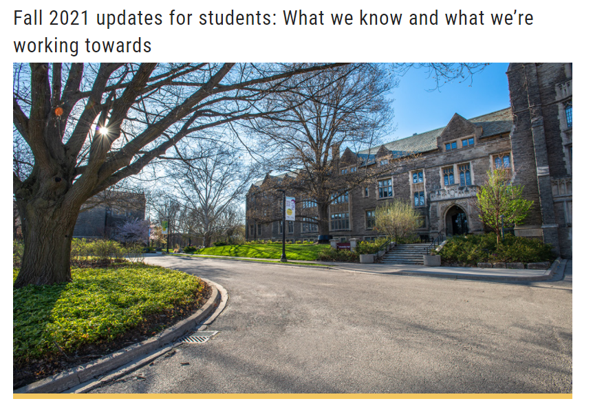 约克大学在5月12日宣布,随着疫苗的大面积接种,校方正在准备更加乐观的方案,约50%的课程计划在9月恢复线下,同时也将继续为无法返校的学生提供高质量的远程学习体验。