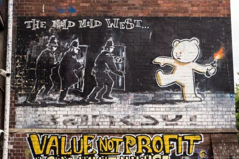在穿梭布里斯托街头巷尾,就如同在逛一个户外展览馆,各种鲜明的、朋克的、幽默的涂鸦艺术可能在下一个转角就会跳出在眼前。其中出名的应该就是Banksy,而影响到这位街头艺术家的涂鸦创作者3D不玩街头艺术后去搞音乐了,成立了Massive Attack乐队,又发扬了一种从布里斯托开始流行的音乐形式Trip hop。
