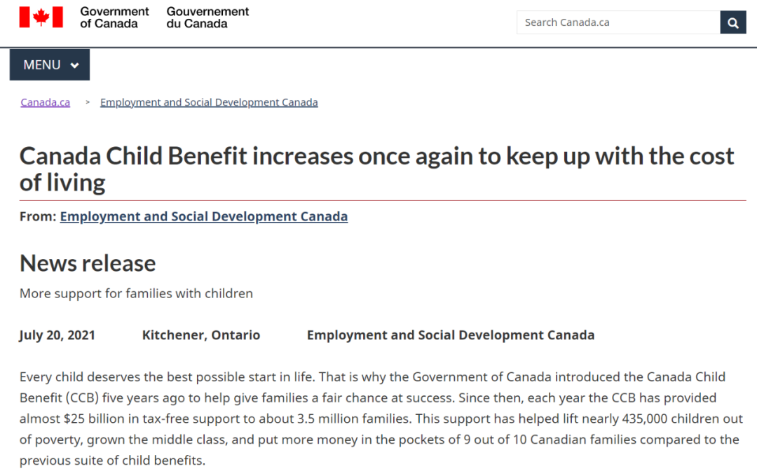 加拿大家庭和儿童部长Ahmed Hussen表示,与五年前儿童福利金刚刚出台时相比,每个孩子可以领到的牛奶金已经增加了$350。这笔每月发放免税儿童福利金目的是“为最需要的人提供更多支持,帮助支付抚养18岁以下儿童的费用。”政府还表示,增加福利金的目的是为了“应对不断上涨的生活成本”。