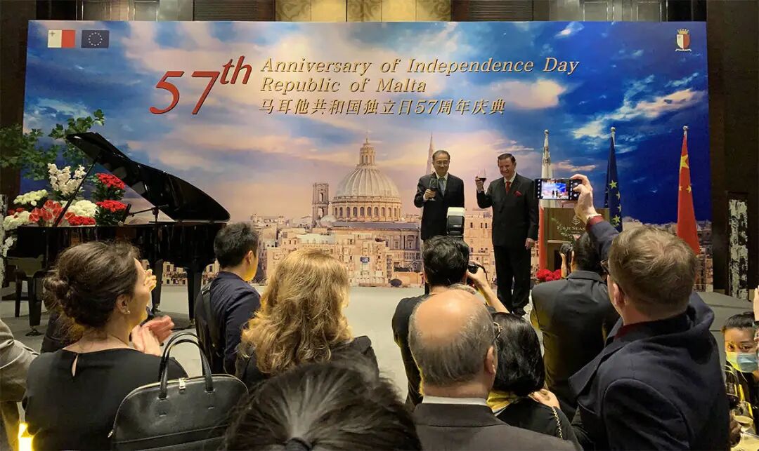 2021年9月22日马耳他共和国57周年庆典在北京四季酒店隆重举行,马耳他驻华大使卓嘉鹰先生与夫人卓佳慧女士设宴欢迎与会来宾。