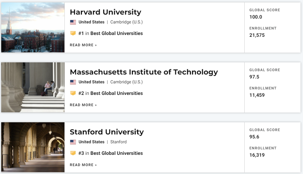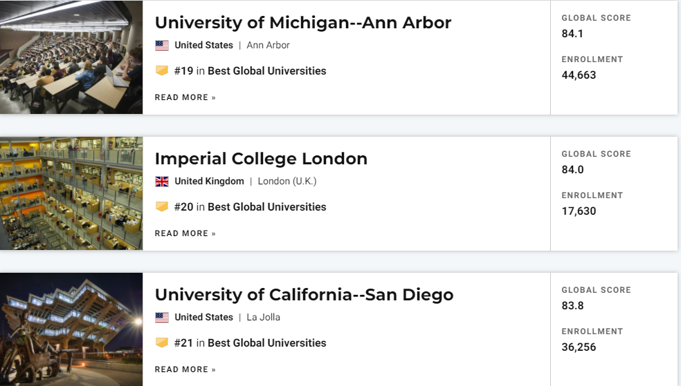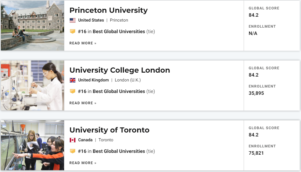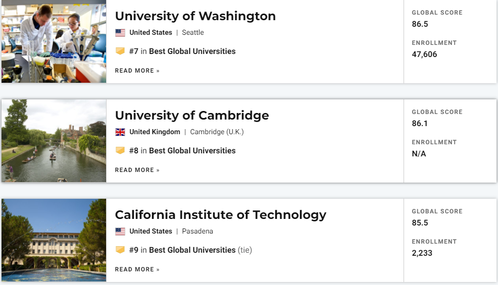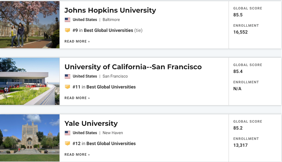 刚刚!2022年度U.S.News世界大学排名正式发布!