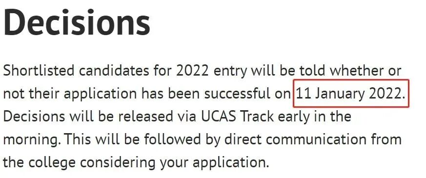 申请结果会通过UCAS Track一早发放,随后会有申请学院直接与你沟通。