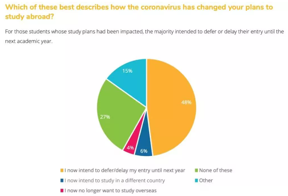 在受访者中,66%的中国留学生表示受到了疫情影响,但彻底取消留学计划的人占极少数。