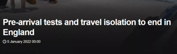 从英国时间1月7日星期五04:00 开始,已完全接种疫苗的乘客和 18 岁以下的乘客入境英国将不再需要出发前两天进行测试。抵达后,他们将必须进行 PCR 测试,但在等待结果时不再需要自我隔离。