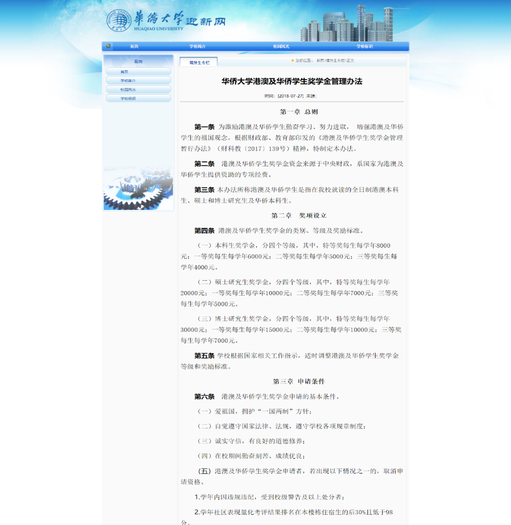 除此之外,北京大学、上海大学、复旦大学和华侨大学等学校官网上可以查询到历年华侨生奖学金评定和申请的相关通知与公告,这说明国家的奖励政策持续利好且稳定执行。