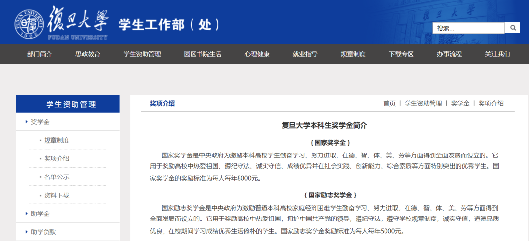 复旦大学发布的港澳台及华侨学生奖学金