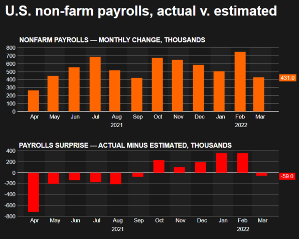 根据Refinitiv的大数据统计,美国劳动力市场延续了史无前例的增长势头,在3月份新增43.1万个就业岗位, 失业率和失业人数几乎都降至疫情前的水平。