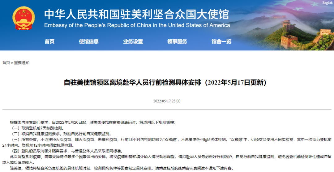 回国检测放宽无疑对需要回国的华人小伙伴们是一个天大的好消息!