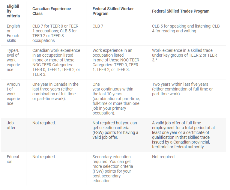 据政府网站报道,加拿大移民部门将于2022年11月16日转用2021年版的国家职业分类(NOC)系统。新的NOC将改变加拿大一些移民项目的资格,包括快速通道。目前,为了获得快速入境的资格,你需要有属于NOC技能类型0、A或B的工作经验,这与2016年的NOC一致。转换后,加拿大移民、难民和公民事务部(IRCC)将着眼于新的培训、教育、经验和责任(TEER)系统来确定工作经验资格。下表显示了NOC2016的技能类型与TEER类别的对比情况:IRCC的网页为在库的快速入境候选人以及尚未提交的候选人提供指示。如果你已经提交了你的资料,但还没有收到申请邀请函(ITA),你需要在2022年11月16日或之后更新你的资料。要做到这一点,首先在加拿大就业与社会发展部(ESDC)网站上搜索NOC2021名单。之后,用你的TEER类别和五位数的职业代码更新你的资料。如果你打算在11月16日或之后提交你的快速入境资料,你必须在NOC2021列表中找到你的职业代码,并在填写资料时提交。如果你在11月16日之前已经收到ITA,你必须使用NOC2016提交你的申请。没有必要找出哪个新代码与你已经拥有的代码相对应。有资格参加FSTP的TEER2和3的主要组别包括:主要组别72,技术行业和运输官员和控制人员,不包括次主要组别726,运输官员和控制人员;主要组别82,自然资源、农业和相关生产领域的主管;第92大类,加工、制造和公用事业主管,以及公用事业操作员和控制员;第93大类,中央控制和流程操作员以及飞机装配工和检查员,不包括第932大类,飞机装配工和飞机装配检查员;第6320小类,厨师、屠夫和面包师,以及;第62200单位,厨师。你在综合排名系统(CRS)中安排就业得到的分数将遵循技能类型/等级更新表。例如,如果你在技能类型/级别0、A或B中安排就业,你会得到50分,如果你的NOC是在TEER0、1、2或3中,你仍然会得到这些分数。根据联邦技术工人计划(FSWP)的选择因素,你得到的分数将遵循技能类型/等级更新表。这意味着,如果你在技能类型/级别0、A或B的安排就业中得到10分,你在TEER0、1、2或3的安排就业中仍将得到这些分数。