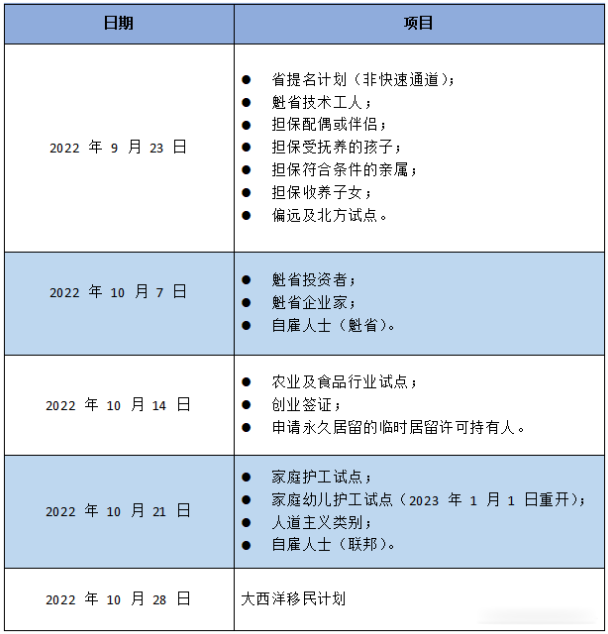 省提名项目(非快速通道),家庭团聚类,魁省技术工人类和偏远及北方试点等热门项目将只接受网上申请。如果申请人无法在线申请,可联系IRCC要求纸递,具体细节将稍后发布。否则在下列日期之后,纸质递交的申请将被退件处理。