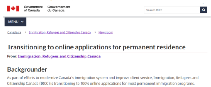加拿大移民、难民和公民部 (IRCC) 于9月1日在官网公布,从2022年9月23日起,大部分永久居民申请项目将从纸递转变成网递,实现移民系统现代化,进一步改善服务质量。
