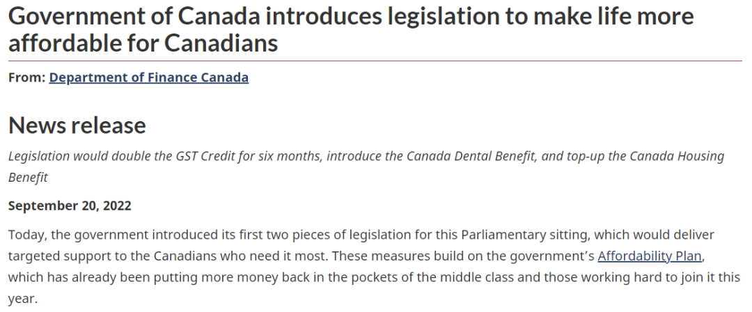 今天,加拿大联邦政府众议院推出了两项立法,将为最需要的加拿大人提供有针对性的支持。今天提交议会的立法代表了最新的一整套措施,以支持加拿大人应对不断上涨的生活成本,同时又不会提高通货膨胀。