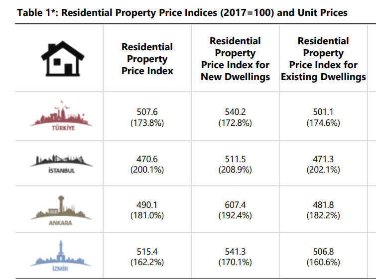 土耳其第一大城市伊斯坦布尔年涨幅达200.1%,安卡拉年涨幅181%,伊兹密尔年涨幅162.2%。