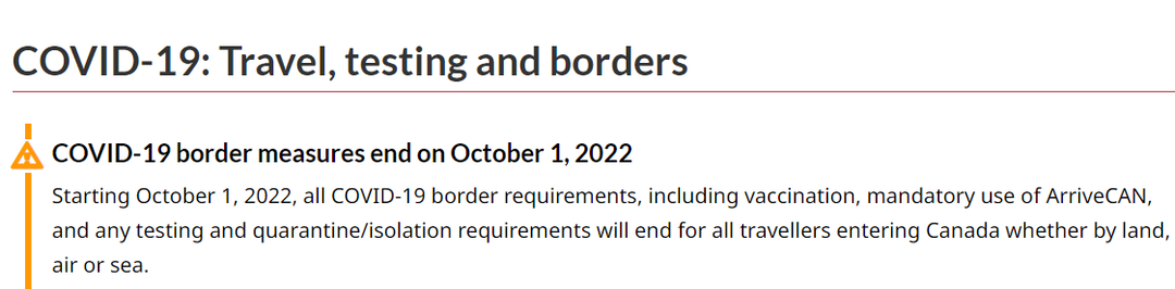 好消息!2022年10月1日起,加拿大将取消对所有旅行者的疫苗要求,不再强制ArriveCan应用程序申报。这标志着加拿大实施约两年半的COVID-19紧急边境措施即将结束,所有入境加拿大的旅行者可以像疫情前一样轻松入境加拿大。