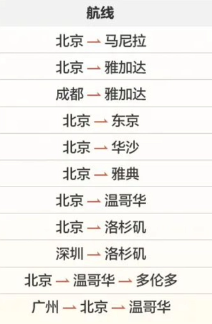 10月30日冬春航季开启后,将继续运营北京-布鲁塞尔、北京-莫斯科、北京-贝尔格莱德、北京-柏林、北京-曼彻斯特、重庆-罗马、重庆-马德里、深圳-温哥华、大连-东京、大连-首尔共10条往返国际客运航线。