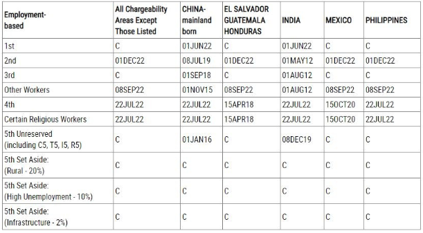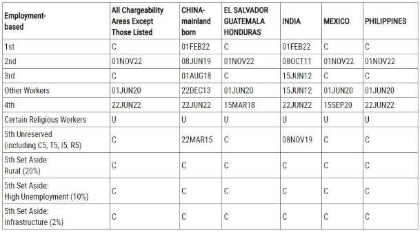 EB-1:从2023年1月开始EB-1双表均出现排期:表A排期为2022年2月1日,表B排期为2022年6月1日。EB-2:2023年1月,EB-2类别双表排期停滞:表A排期停留在为2019年6月8日,表B排期停留在为2019年7月8日。从今年12月起,国务院正式宣布了EB-2类别进入全球排期时代,原因是EB-2的申请量越来越大配额已经不够分了,设置排期之后明年1月EB-2的全球双表排期也无任何变化。EB-3:上个月稍微动了一点点后2023年1月排期继续停滞,EB-3表A排期停留在2018年8月1日,EB-3表B排期停留在2018年9月1日。EB-5:受《2022年综合拨款法案》影响,今年5月EB-5区域中心已再次获得授权恢复排期,同时还出现了三种新的类别,分别是乡村地区、高失业地区和基础设施项目。EB-5投资移民Unreserved,即对应改革前直投项目和区域中心项目,2023年1月排期停滞:表A排期为2015年3月22日,表B排期依旧停留在2016年1月1日。Set Aside,对应新法案出现的三类Reserved类别,也就是乡村地区、高失业地区和基础设施项目无排期。对EB-5美国投资移民申请感兴趣的申请人还是得抓住新法新政策,申请新法案出现的三类Reserved类别,有需求的申请人可以微信联系我们咨询。F-1:公民21岁以上未婚子女类别,表A排期停滞在2014年12月1日,表B排期停滞在2016年8月8日。F-2A:绿卡持有者配偶及子女类别,表A继续无排期,1月人在美国境内的申请人,可以同时递交I-130、I-485表格,表B也是无排期状态。F-2B:绿卡持有者21岁以上未婚子女类别,表A排期无变化,停留在2015年9月22日,表B排期为2017年1月1日。F-3:美国公民已婚子女类别,表A排期停滞在2008年11月22日,表B排期为2009年11月8日。F-4:成年公民兄弟姐妹类别,表A排期停滞在2007年3月22日,表B排期为2007年12月15日。如果您也想移民美国,欢迎联系我们为您进行一对一咨询。免责声明:本文来源于网络,版权归原作者所有。若涉及版权问题,请作者及时联系小编删除,我们会第一时间进行处理,谢谢。