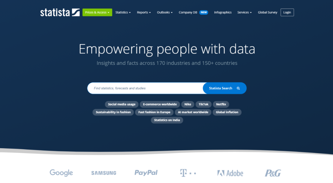 专门整理数据的网站,是一个齐全的数据库,里面包含了4000多种类型的数据,比如市场分析,企业分析等等。数据都非常详细,图表的模式简单清晰,可以选择柱状图、折现图、饼图等等。