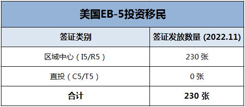 11月份,全球各地中国大陆出生的申请人,获得EB-5签证共计230张(全部是发放给区域中心项目的)。