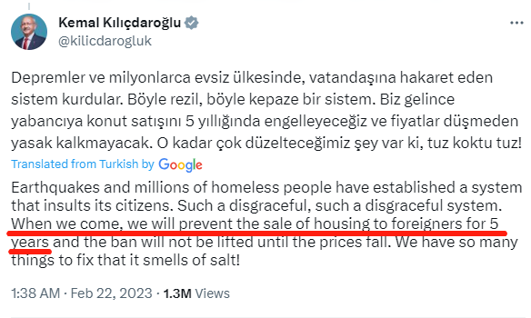埃尔多安以52.16%投票率再次当选士耳其总统,外国人购房政策无变化。