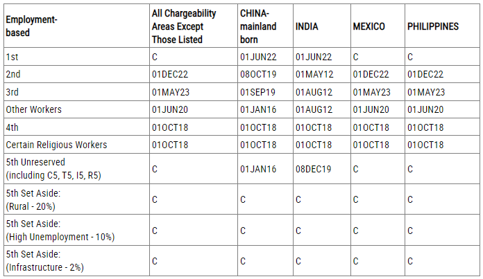 注:印度地区的EB1排期倒退10年,其他全球性/港澳地区也开始出现排期。- 第一类别(含EB1A杰出人才,EB1):2022年6月1日;