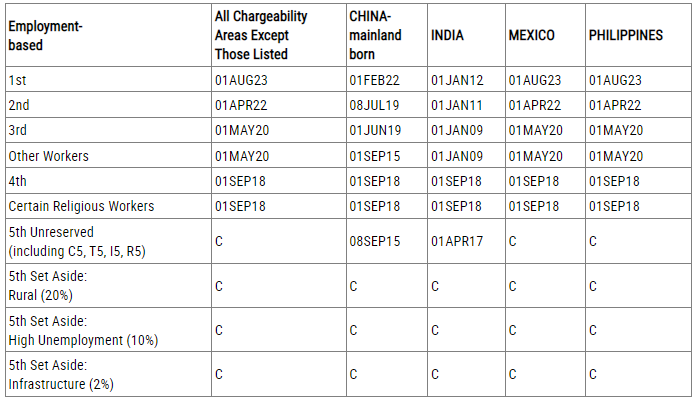 2023年8月美国移民排期表出炉,EB1出现全球排期