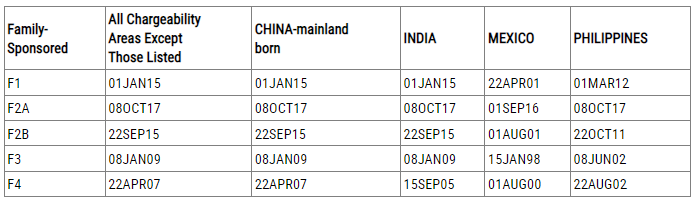 - F2A(绿卡申请配偶和未成年子女):2017年10月8日,倒退至1066天;