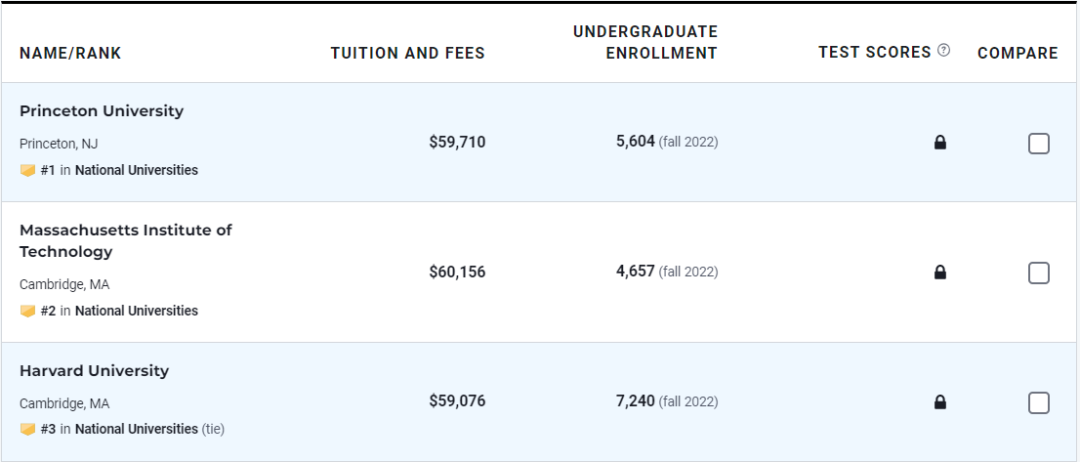 在Top5的大学中,全美Top1毫无意外,依旧是无法撼动的普林斯顿大学,不愧是走出69名诺贝尔奖得主、连续13年屹立不倒的藤校老大哥。