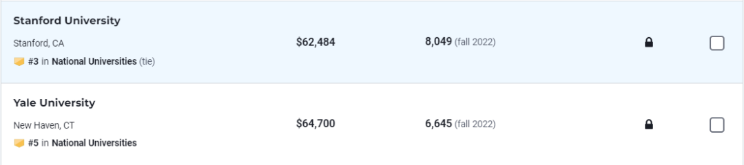 其次,麻省理工位列第二,哈佛和斯坦福并列第三,耶鲁大学紧随其后,位列第五名。