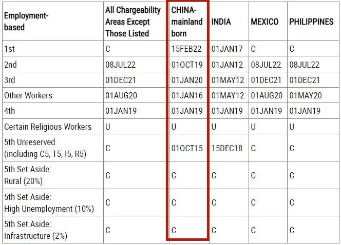 - EB-1(杰出人才):2022年8月1日,原地踏步;