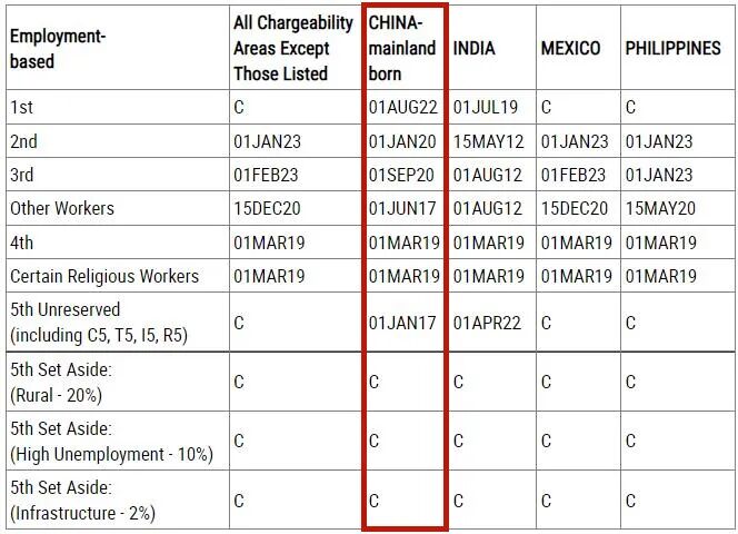 - EB-3(技术类专业劳工):2020年9月1日,原地踏步;