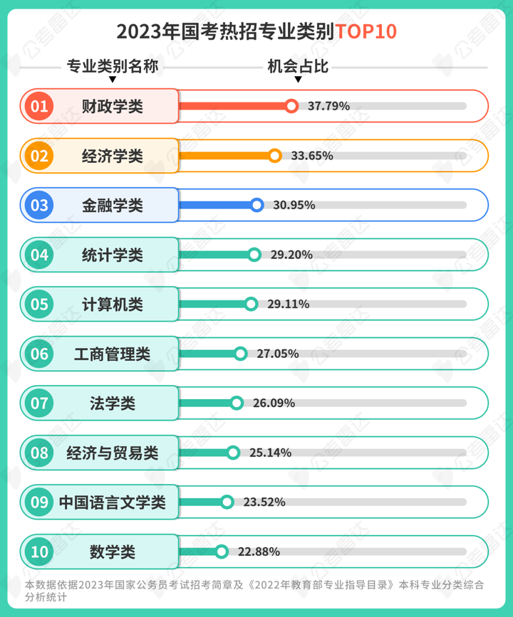 随着国家公务员考试的竞争日益激烈,越来越多的留学生选择考取公务员职位。然而,并不是所有专业都适合考公务员考试。公考雷达曾统计的2023年国考热门专业TOP10,分别是: