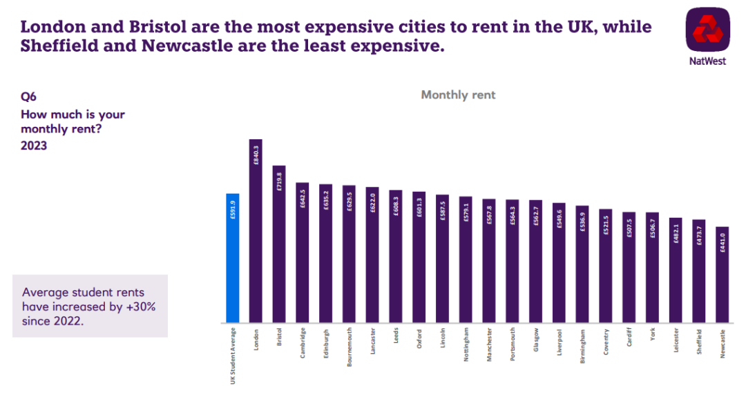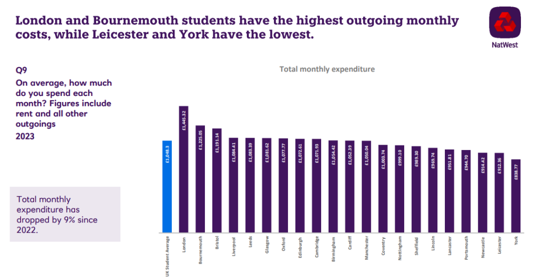 英国NatWest银行发布了《2023 年学生生活指数》,报告调查了来自于21个地区63个大学的3,052名学生,询问他们在必需品上的花费以及他们的预算方法。