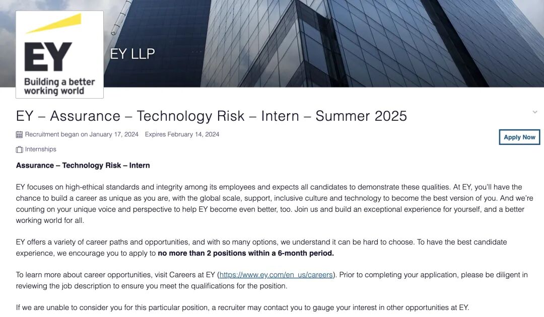 EY最新实习岗位: