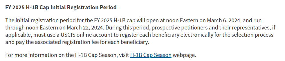 同时H-1B抽签注册窗口期已确定!