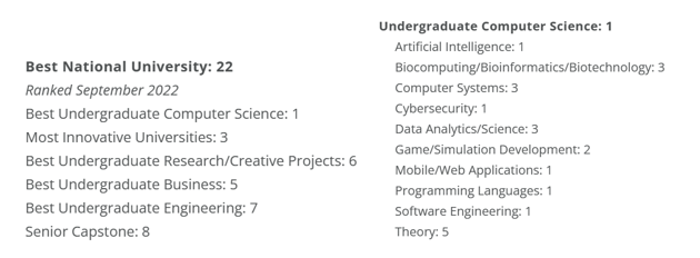 另外,除了计算机专业之外,它的艺术学院,平面设计、新媒体艺术也在TOP 10,Tepper 商学院不仅仅从事本科生的培养,同时也培养硕士、博士甚至更高级的人才。
